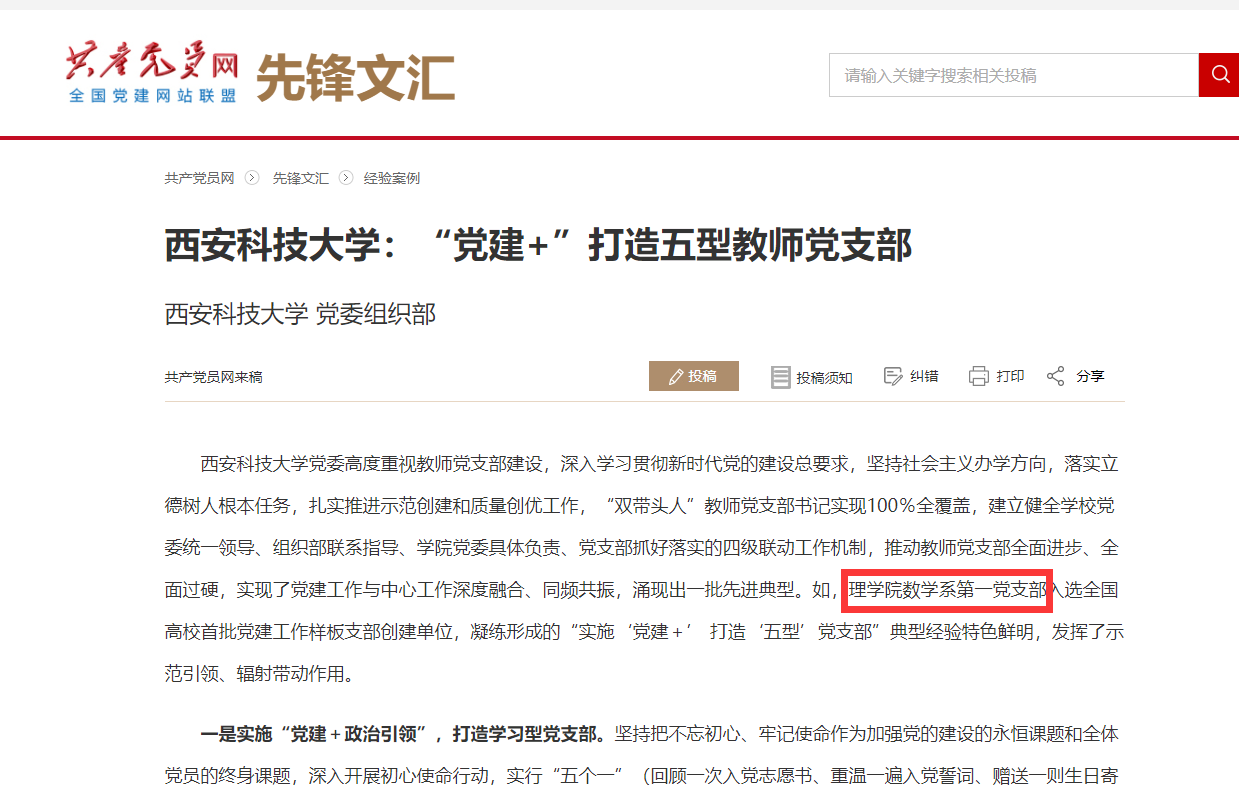 二是实施“党建+平台建设”,打造阵地型党支部。依托全国高校思想政治工作网、365体育官网、“党旗飘飘数学系一支部”微信公众号,组建“三位一体”网络宣传平台,及时宣传上级党组织决策部署,定期发布党建工作动态,始终坚持团结稳定正面宣传,唱响主旋律,弘扬正能量。两年来,支部活动在全国高校思想政治工作网宣传报道90条,在“党旗飘飘数学系一支部”微信公众号发布宣传报106篇。特别是新冠肺炎疫情以来,支部自觉践行常态化疫情防控“四个一”行动,积极打造战“疫”教育素材库,构筑“红色防火墙”,引领师生听党话、跟党走,切实把思想和行动统一到党中央决策部署上来。
