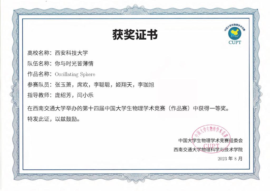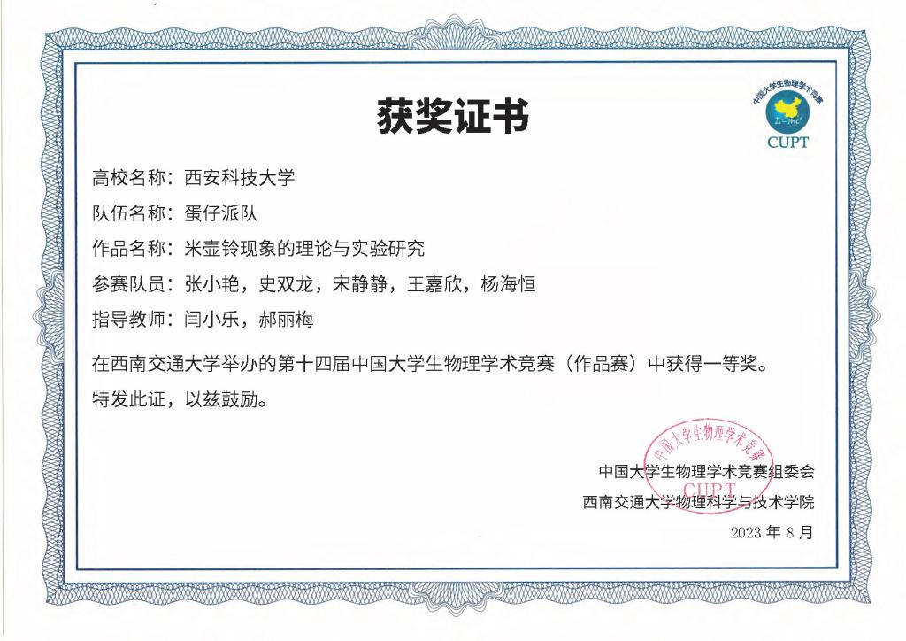 831日,中国老员工物理学术竞赛(作品赛)评审工作在西南交通大学圆满结束,来自全国一百余所高校的448支队伍参与了作品比赛。经过激烈角逐,公司选派的11支代表队荣获国家级一等奖7项,二等奖1项,三等奖3项。