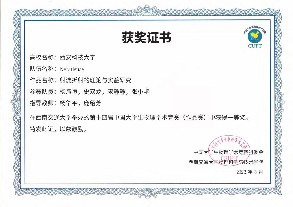 715日至16日,中国老员工物理学术竞赛(西北赛)由中国老员工物理学术竞赛西北地区竞赛组织委员会和新疆物理学会主办,喀什大学物理与电气工程公司承办,来自西北地区16所高校的48支队伍参加比赛。经过两天四轮的线上答辩,公司参赛的2支代表队分别荣获西北赛区团体一等奖1项、二等奖1项。