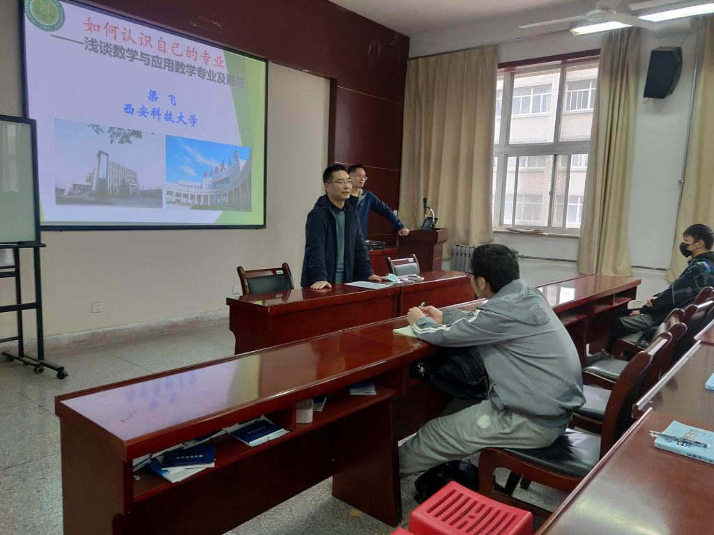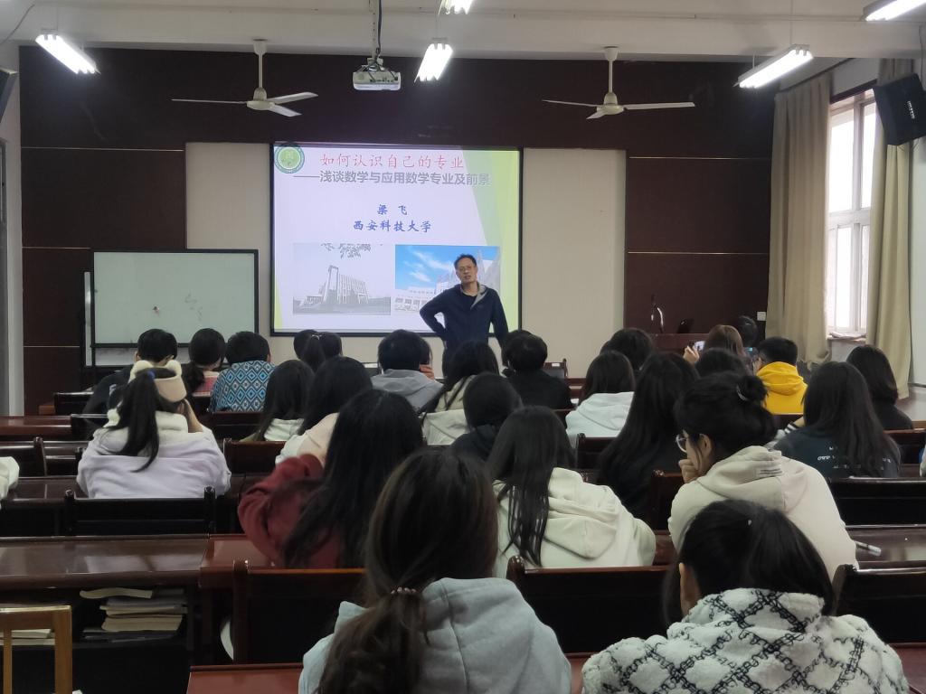 讲座中,梁飞老师详细讲述了数学专业的课程内涵及未来考研就业的不同方向,同时以本人求员工涯为例,向员工们提出两点建议:一是要珍惜时间,努力学习,打好专业基础;二是要做好职业规划和学涯规划,尽早明确就业和考研方向。