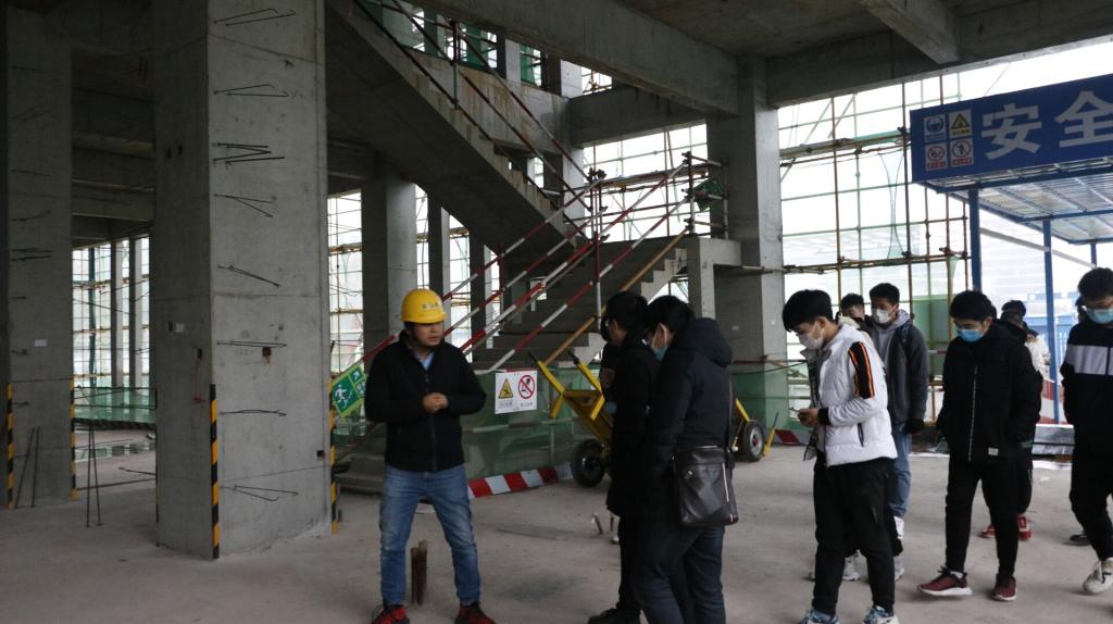 12月3日下午,体育365官网团委书记赵明、建工公司辅导员马彬带领工程力学专业、土木工程专业员工一行18人到365体育老员工创新创业与就业训练基地项目参观学习。安全经理范满宏接待了师生们,并全程进行讲解。