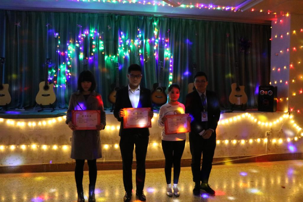 宿舍文化节颁奖仪式中,员工会主席申宇航,12届分团委副书记张堂基和16级辅导员孙嘉伟老师依次为优秀宿舍颁奖。女生小合唱《心愿》,梦幻中带点希望,完美地表达出少女心中的淡淡情怀。最后,各位老师及嘉宾合影留念。晚会在满堂欢声笑语中完满结束。