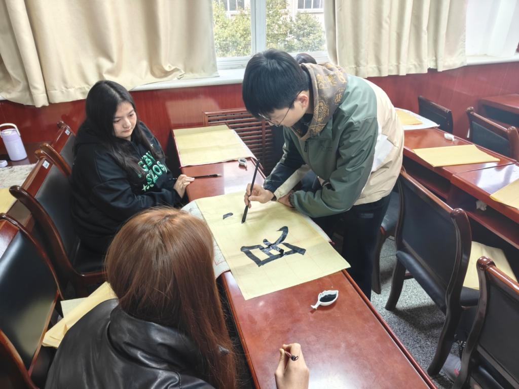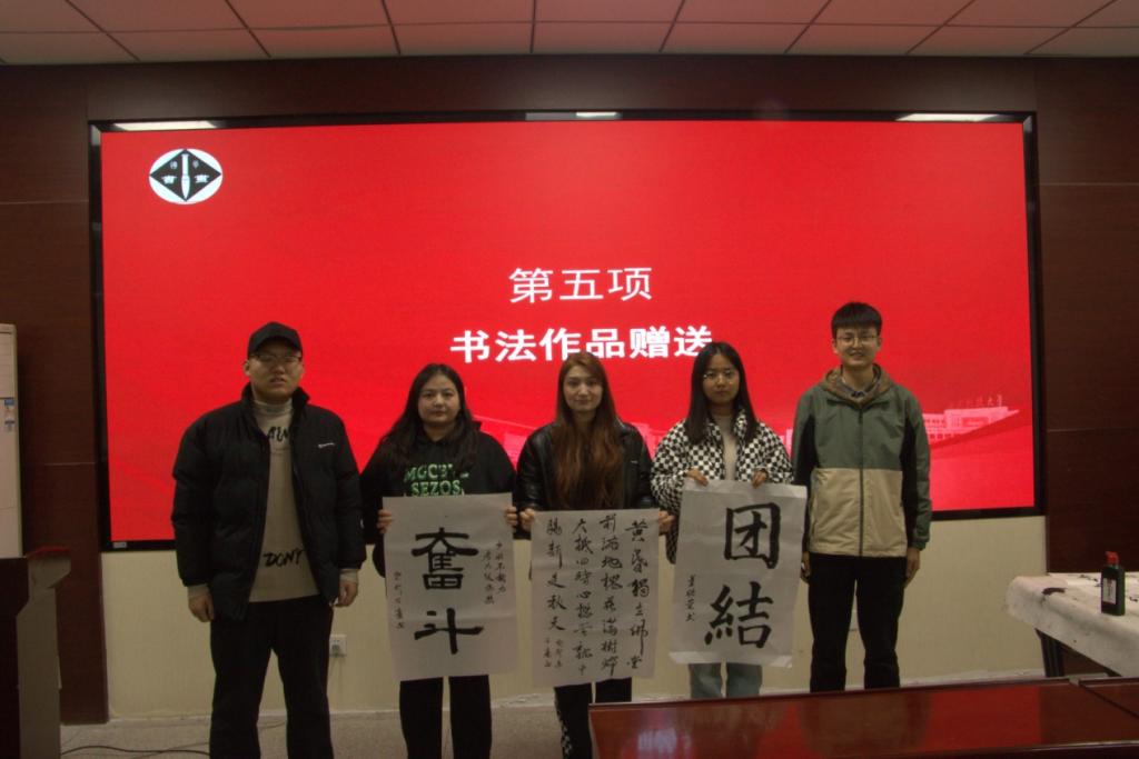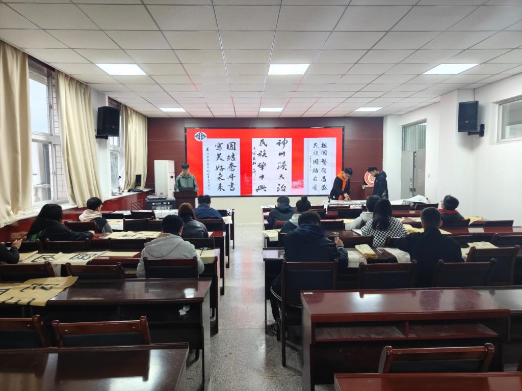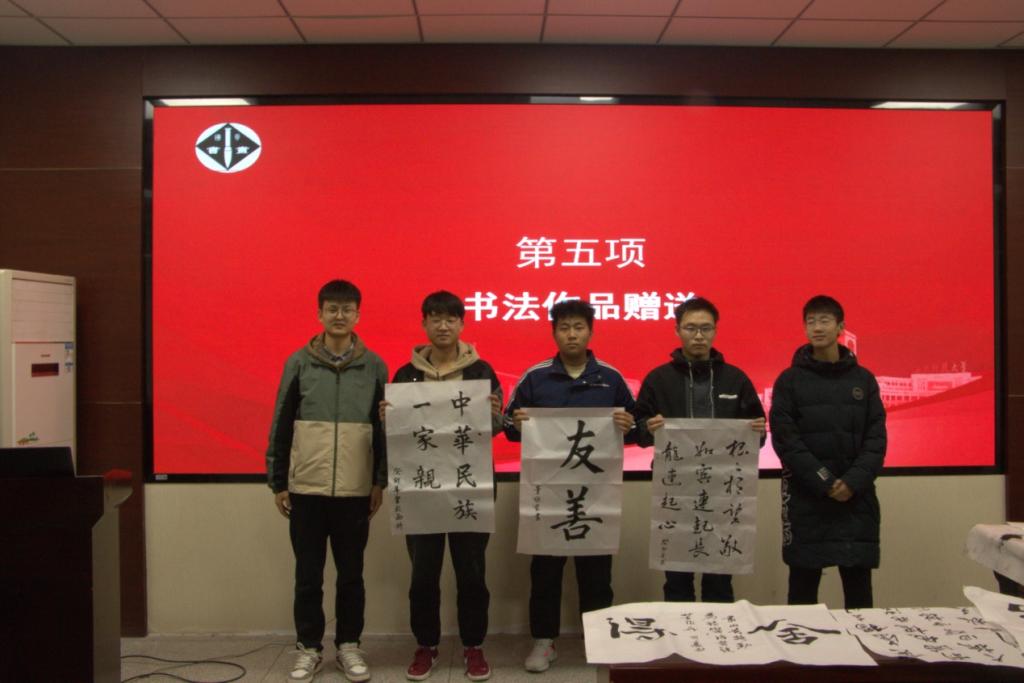 活动中,与会师生首先共同学习了习近平总书记在中共中央政治局第九次集体学习上的重要讲话精神,大家就铸牢中华民族共同体意识老员工该如何做开展了讨论。接下来,进行了“民族团结一家亲”主题书法鉴赏,国风书画协会的同学们耐心细致地讲解书法用笔技巧,让大家仔细体会在书法练习中陶冶情操、修身养性。在他们的示范带动下,少数民族同学纷纷拿起毛笔开始练习书法,大家互相分享、交流书法经验,鉴赏、评析书法作品。最后,书画协会的同学把自己的作品赠与了参会的少数民族同学留念。