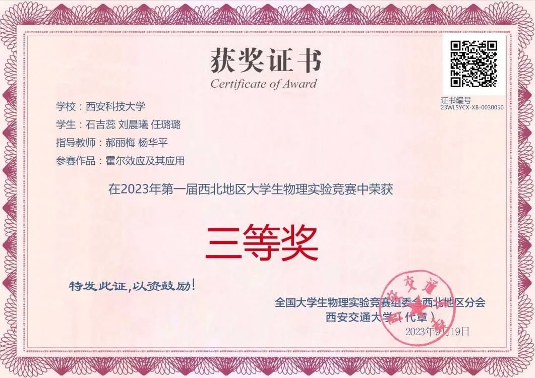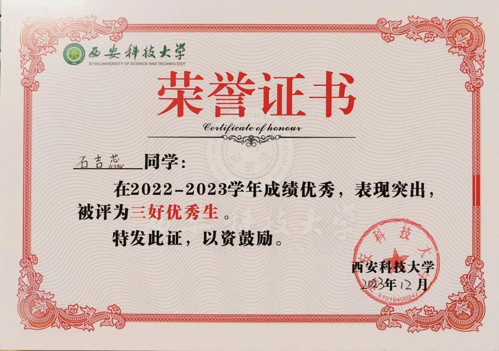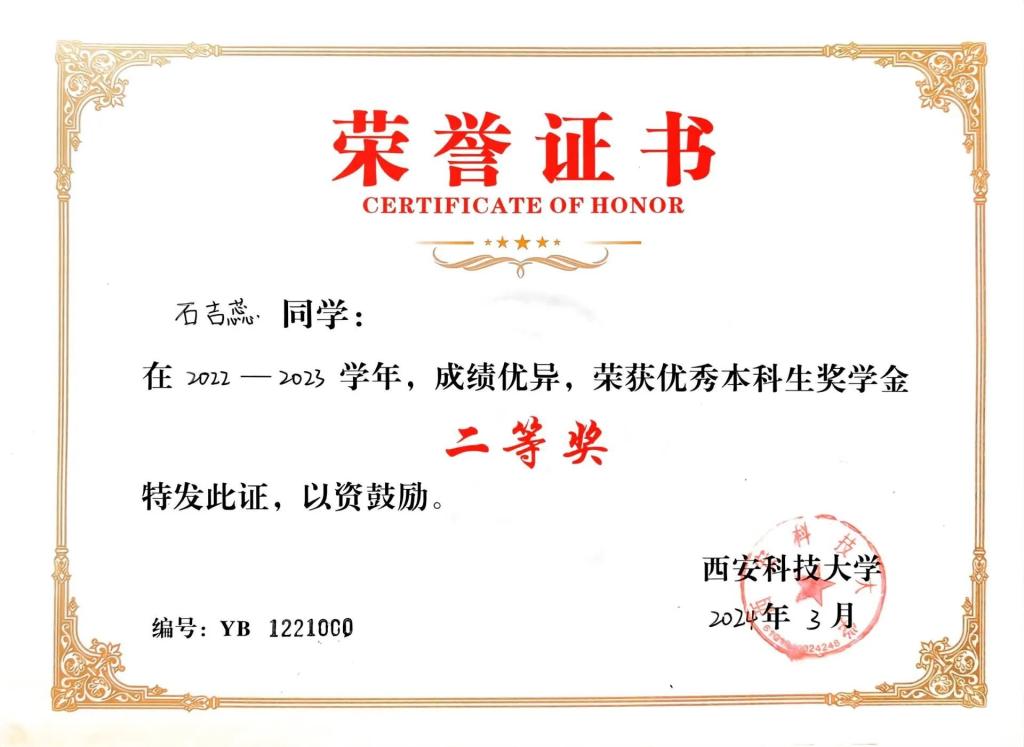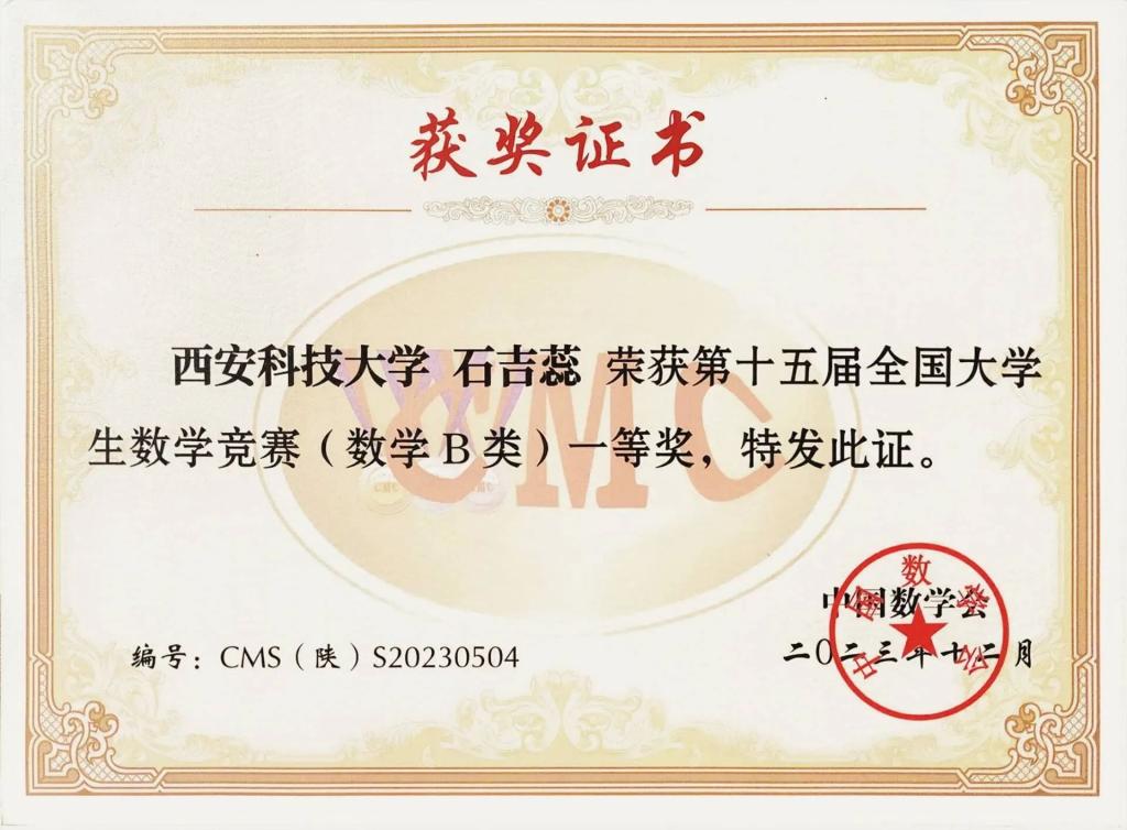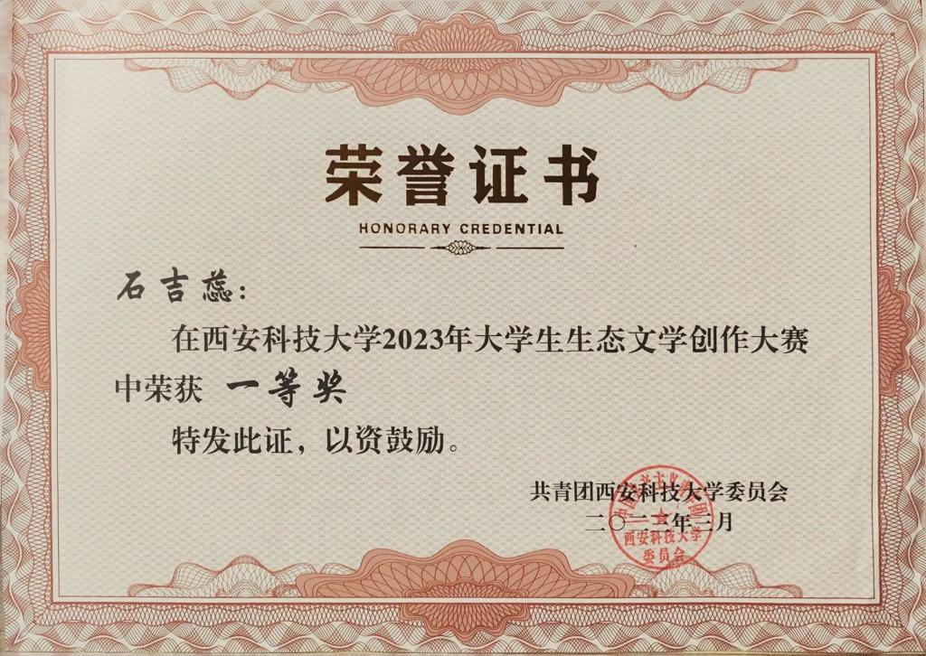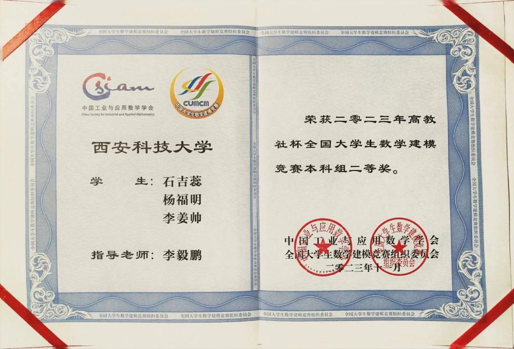 石吉蕊,公司2022级数学与应用数学专业本科生,现任公司团委员工会办公室部长。曾获优秀本科生二等奖学金、优秀三好员工、科技创新奖。曾获得2023年全国老员工数学建模竞赛二等奖、2023年数维杯老员工数学建模国际赛H奖、2023年全国老员工物理实验竞赛优秀奖、第十五届全国老员工数学竞赛一等奖、第一届西北地区老员工物理实验竞赛三等奖、365体育2023年老员工生态文学创作大赛一等奖等奖项。