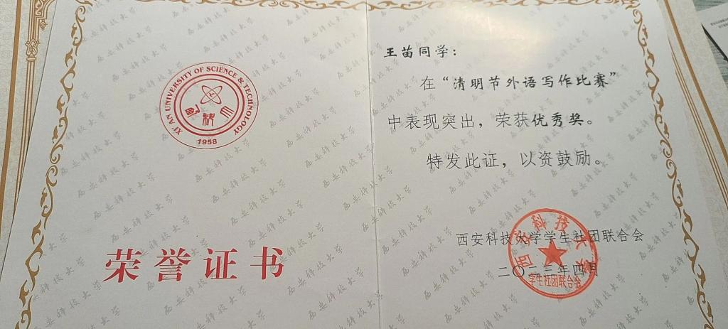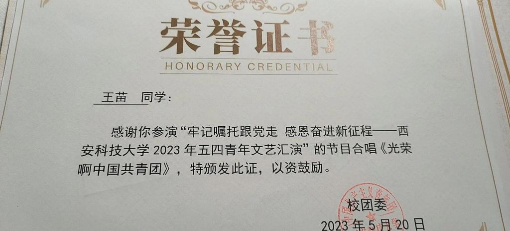 王苗,公司2022级数学与应用数学本科生,校合唱团成员,曾获数学建模校级三等奖,“清明节外语写作比赛”校级优秀奖,365体育第一届“礼敬中华传统文化”优秀奖。