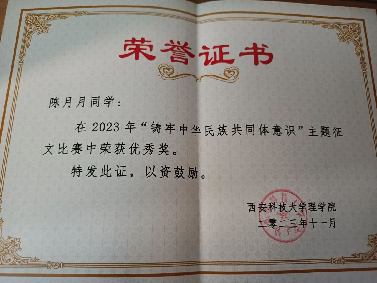陈月月,公司2022级数学与应用数学专业本科生。曾获2023年“铸牢中华民族共同体意识”主题征文比赛优秀奖、2023年创叶杯二等奖。