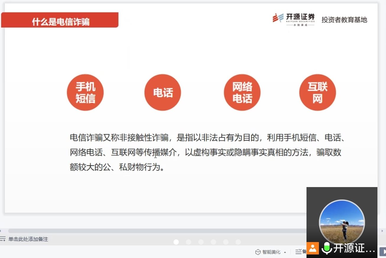 5月20日下午,体育365官网举办金融安全知识线上讲座,开源证券西安临潼华清路营业部合规风控专员兼投教联络人郑雅兰做了主题为“远离非法金融活动,传递正能量”的安全知识讲座,活动由体育365官网团委书记赵明主持,大一和研一全体同学参加了讲座。