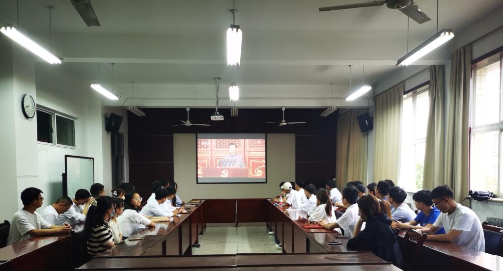 大家认真聆听习近平总书记重要讲话。习近平总书记回顾了建党100周年来,在中国共产党的坚强领导下,中华民族一路抗争取得的辉煌胜利。庆祝大会后,支部开展了“我心向党﹑强国有我”主题讨论,杨致远同学做了题为“我心向党庆百年,奋发图强逐梦行”主题演讲。