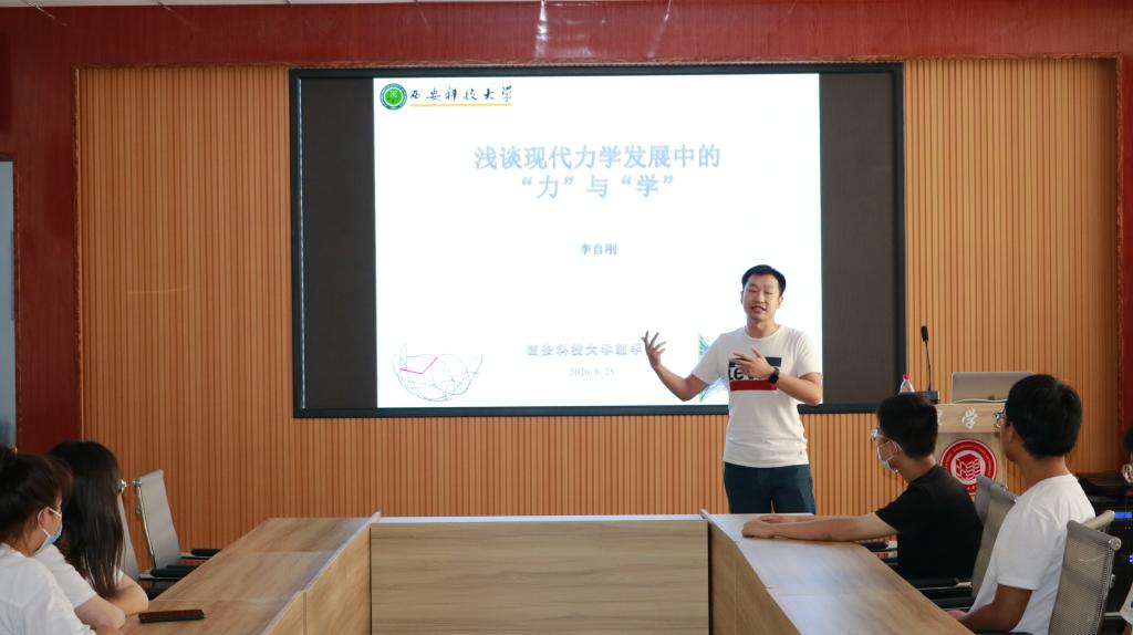 8月25日下午,体育365官网博知讲坛第四讲在临潼校区骊山校园举行,力学系教师、硕士生导师李自刚做了题为《现代力学发展中的“力”与“学”》的报告。报告会由体育365官网团委书记赵明主持,工程力学专业2018、2019级全体同学通过线下和线上聆听了讲座。