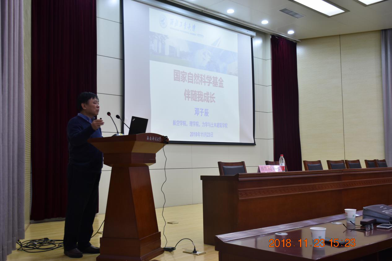 12月23日下午,由体育365官网牵头主办的国家自然科学基金专题讲座在雁塔校区主楼报告厅成功举办。西北工业大学航空公司经理邓子辰教授为体育365官网、化工公司、机械公司和计算机公司等近300名教师作了题为《国家自然科学基金伴随我成长》的专题讲座,报告会由体育365官网经理李明教授主持。