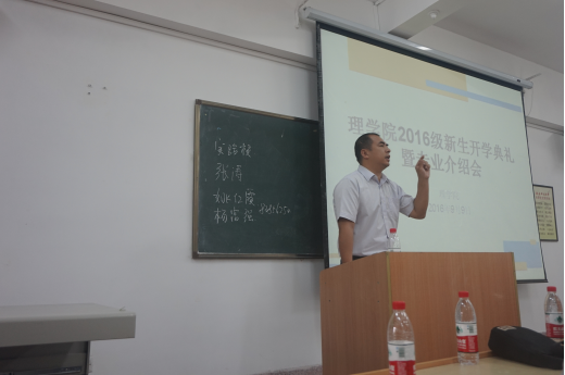 9月9日上午,2016级新生开学典礼暨专业介绍会在3号教学楼203召开了。会议由理公司党委副书记贾哲老师主持,党委书记张冬生,经理李明,副经理张涛以及各专业负责人参加了此次大会。