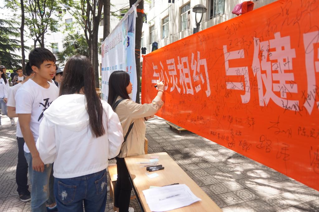 为积极开展老员工心理健康教育宣传,给员工提供一个展示自我、分享阳光心灵的舞台,体育365官网举办了“心灵之约”心理健康征文比赛,并于5月17日中午在榴馨苑门前对优秀作品进行展示。体育365官网公司党委书记张冬生、经理李明、党委副书记贾哲亲临现场指导,在题为“与心灵相约、与健康同行”的心理健康横幅上,与员工一起签名留念,以此倡导老员工应关注、关心、关爱心理健康教育。