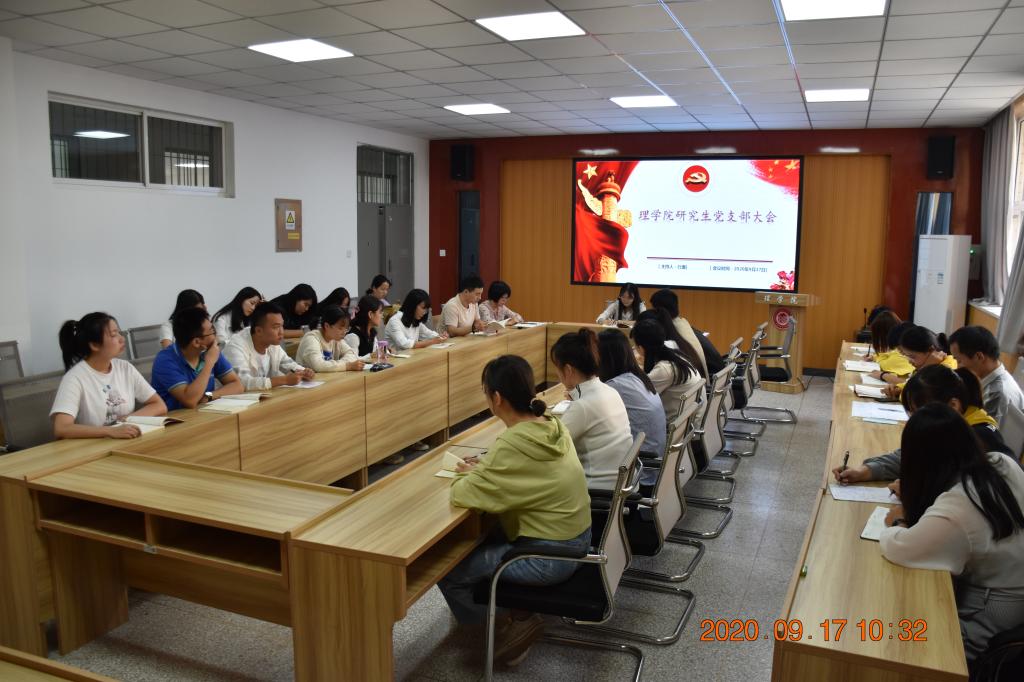 2020年9月17日上午9:30 体育365官网研究生党支部在实验楼208召开了新学期第一次支部大会。参加本次大会的正式党员27名,预备党员1 名,共28名。支部副书记吴利娜主持了本次会议,会议主要分两部分举行: