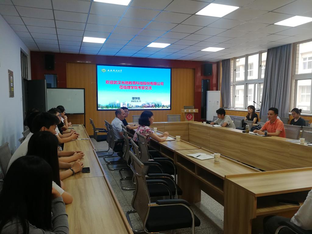 为进一步深化校企合作,促进产学合作协同育人融合发展,9月11日,武汉光驰教育科技股份有限公司在临潼校区骊山校园举行了交流座谈会。武汉光驰教育科技股份有限公司董事长李小红、总经理胡贝强,理公司党委书记孙颜红、副经理解忧,物理系、实验中心负责人及教师、研究生代表共计30余人参加座谈。会议由解忧主持。