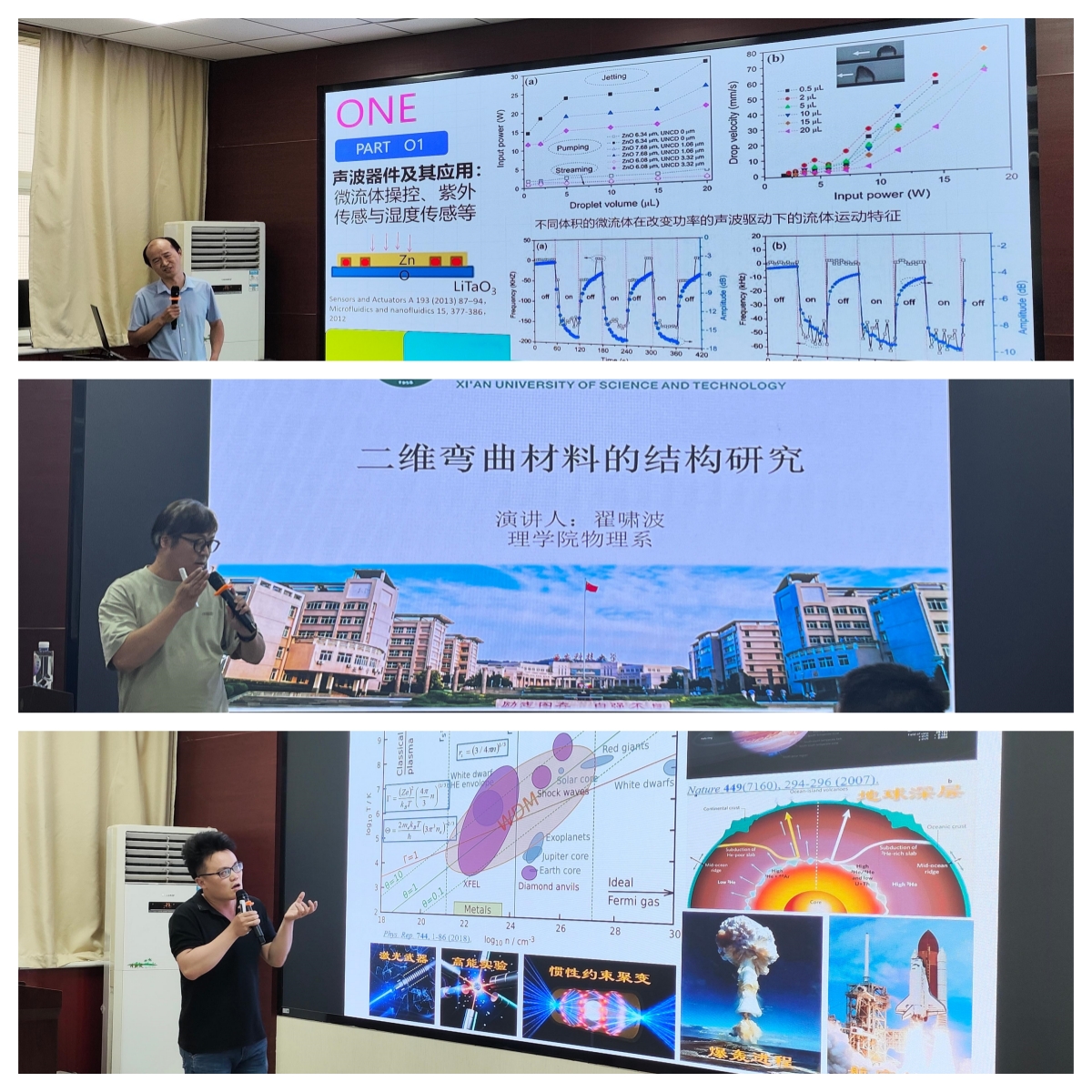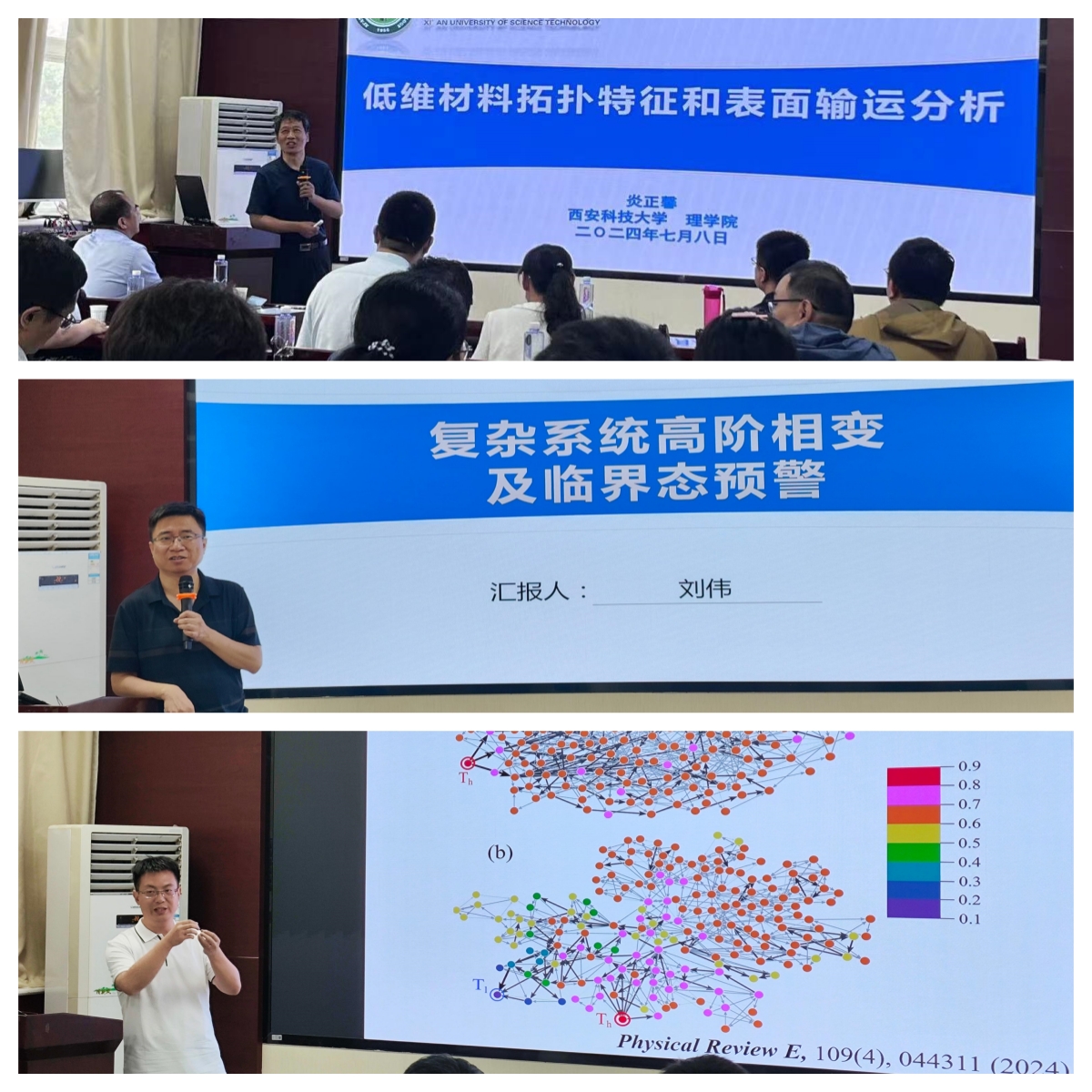 为进一步加强学术交流,营造浓郁的学术氛围,激发创新活力,更好服务于新质生产力发展,7月8日,体育365官网在临潼校区骊山校园召开“探讨前沿理论与工程应用、促进学科交叉融合”物理学科发展学术研讨会。西安交通大学黄子罡教授,公司材料科学与工程公司张涛教授、安全科学与工程公司马天副教授及体育365官网部分教师、物理学科全体研究生共计80余人参加研讨会。研讨会分四个阶段,分别由解忧、王乙先、刘伟、熊科诏主持。物理系主任朱华泽主持开幕式,体育365官网经理张仲华教授到会并致辞。