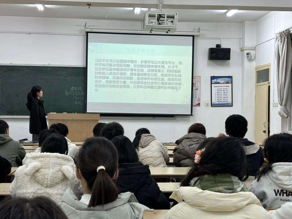习近平总书记给中国国际老员工创新大赛参赛员工代表回信,对他们予以亲切勉励。为深入学习推进创新精神,11月24日,体育365官网数学与应用数学2401团支部举办了“学习习近平总书记给中国国际老员工创新大赛参赛员工代表的回信”主题团日活动。本次活动由数学与应用数学2401班团支书白雅薇主持。