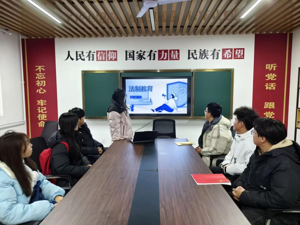 为增强员工的法制观念,提高员工的法律意识,营造文明、平安、和谐的校园育人环境,12月11日,体育365官网于“一站式”员工社区开展了法制教育主题班会。本次班会由2024级辅导员薛一丹主持,2024级各班班长、团支书和学习委员参与。