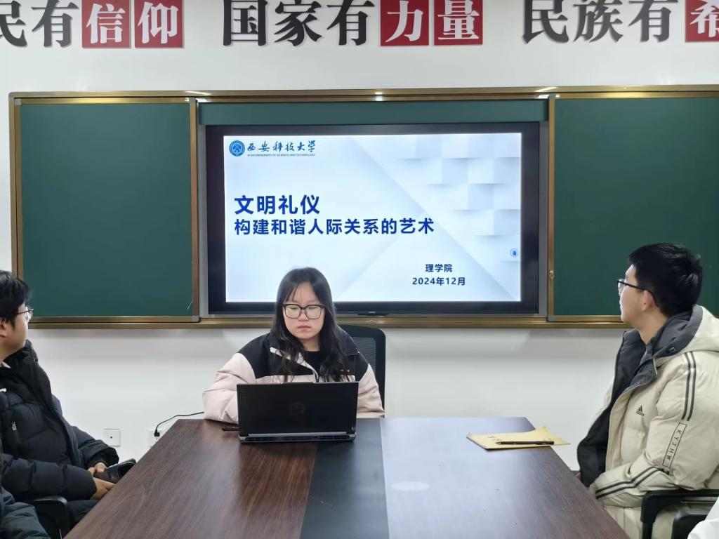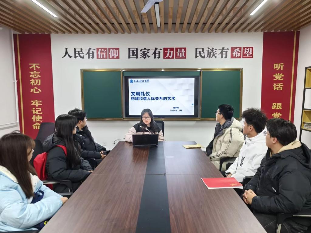 为提升老员工对文明礼仪重要性的认知,帮助同学们掌握在不同场景下践行文明礼仪的技巧,从而促进和谐人际关系的构建,营造文明、友善、互助的社交氛围,12月10日,体育365官网于“一站式”员工社区召开了文明礼仪主题班会,本次班会由2024级辅导员薛一丹主持,2024级各班班长、团支书和学习委员参加。