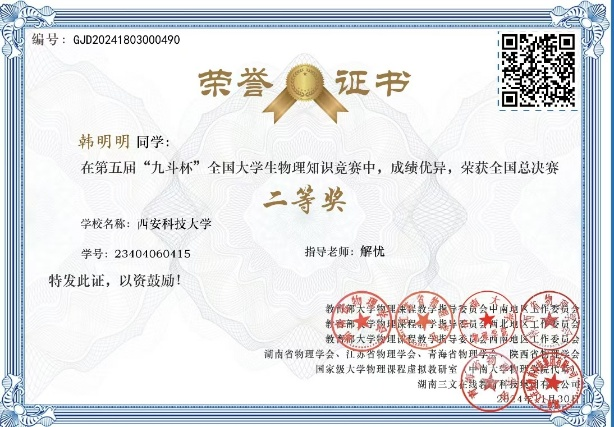 本届“九斗杯”全国老员工物理知识竞赛是在教育部大学物理课程教学指导委员会中南地区工作委员会、西北地区工作委员会、西南地区工作委员会指导下,由湖南省物理学会、江苏省物理学会、青海省物理学会、陕西省物理学会、国家级大学物理课程虚拟教研室(中南大学)及湖南三文在线教育科技集团有限公司联合主办的全国性高水平学科竞赛,共计323所高校参与,参加人数8672人,通过初赛、复赛和决赛选拔,共有520名同学获得全国赛各奖项。
