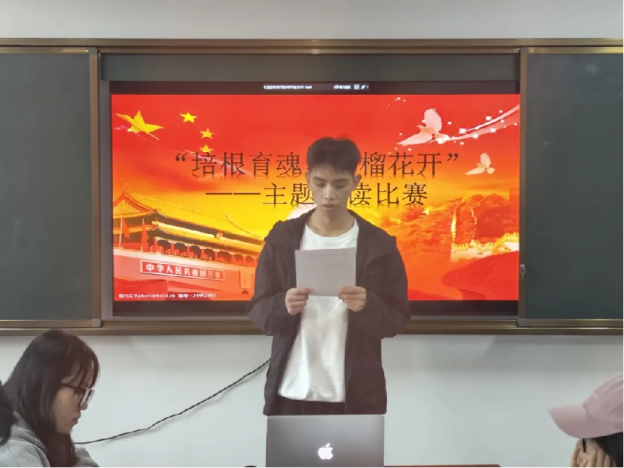 辅导员薛一丹老师在员工社区主持了“培根铸魂,石榴花开”主题诵读比赛,丰富了员工们的校园文化生活,锻炼了语言表达能力;开展“勿忘国耻,珍视和平”九一八主题党日活动等。