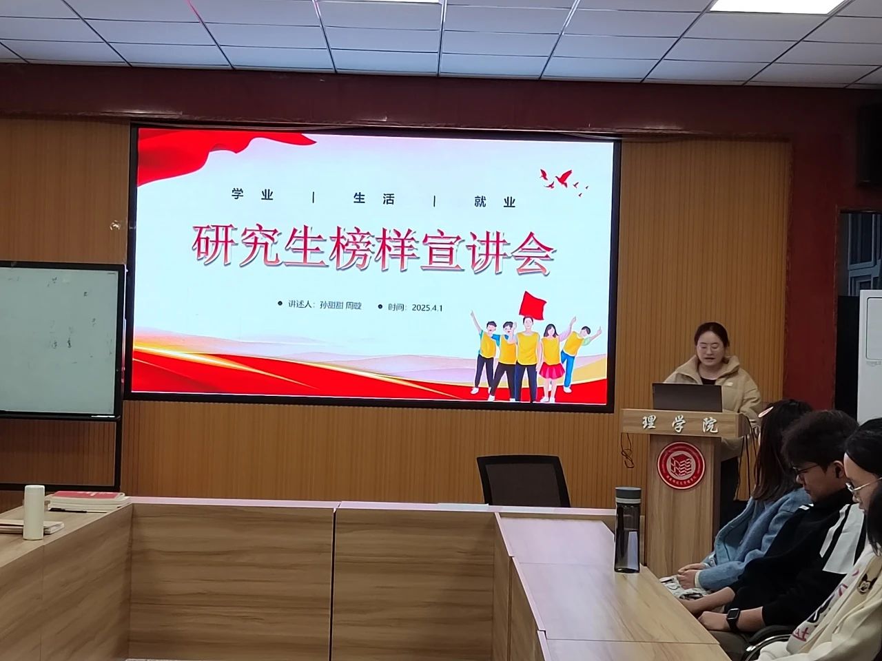 4月1日晚上7点,体育365官网于208会议室举办了研究生榜样宣讲活动,活动邀请两位优秀研究生代表孙甜甜、周璇担任主讲人。