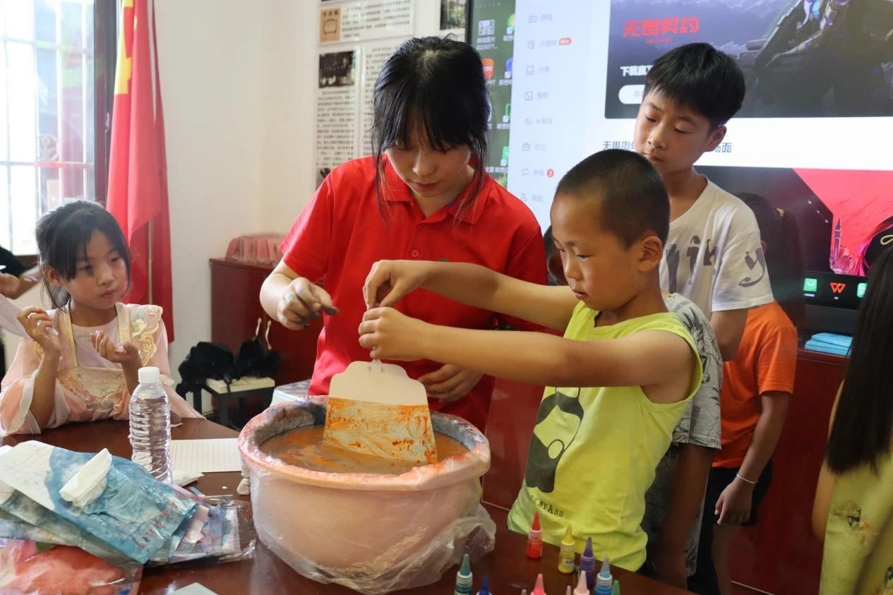 实践团成员杨祎丹系统阐释了漆扇艺术的历史渊源、制作工艺及文化传承价值,通过现场演示上漆技法开展沉浸式教学。留守儿童们通过亲手制作,深入理解了这项非遗技艺的精髓,更激发了其传承保护意识,纷纷主动表示要争当传统文化传承者,以实际行动弘扬中华优秀传统文化。