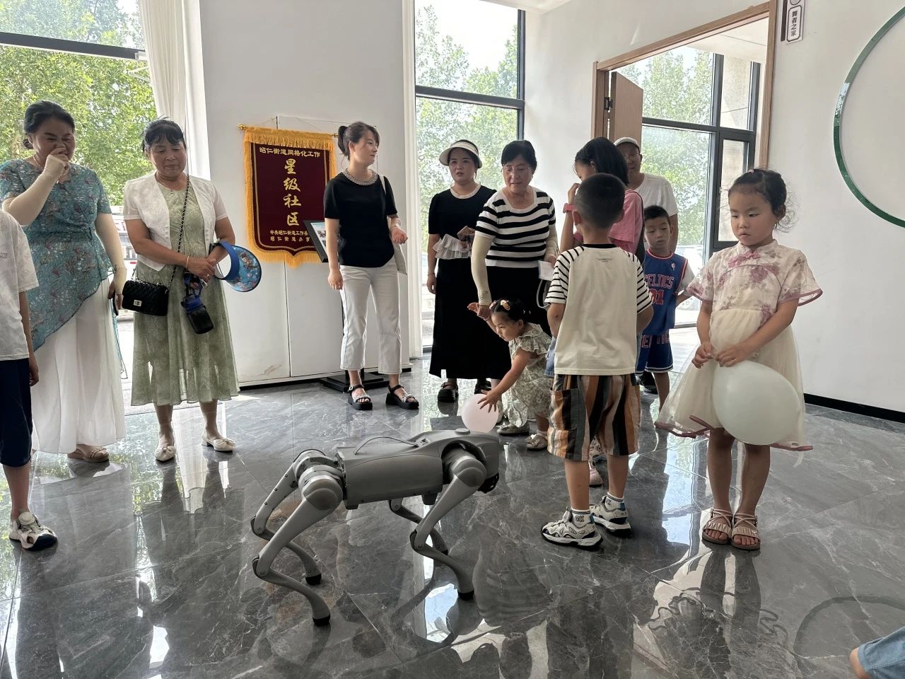 长武县科技协会展示的智能机器狗成为全场关注的核心。这一科技展品凭借精准的动作控制,完成了转圈、翻滚等系列演示,其灵动的姿态与憨态可掬的造型,迅速吸引了在场儿童的注意力,孩子们纷纷聚拢围观,现场不时响起清脆的笑声。
