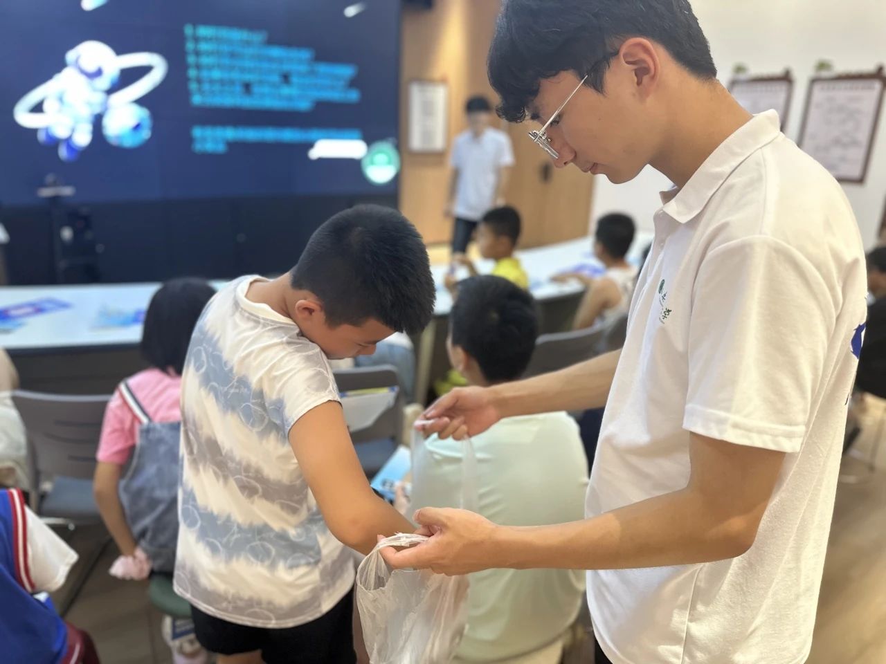 宋岩星带来的3D打印展示让孩子们啧啧称奇。他先是用简单的比喻解释了 “层层叠加造万物” 的原理,随后现场操作打印机制作小摆件。看着塑料丝在机器下逐渐变成口哨,孩子们忍不住伸长脖子张望,科技的魔力在这一刻深深吸引了他们。