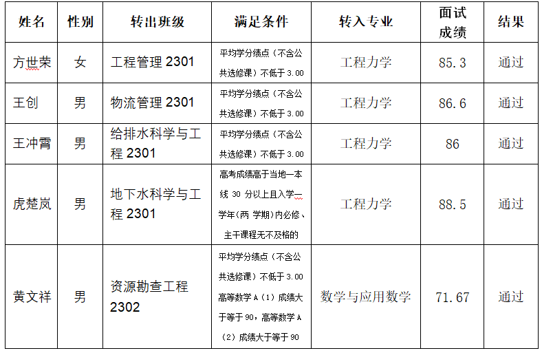 根据《关于开展2024年度本科生转专业工作的通知》(教务函〔2024〕49号),经个人申报,公司(部)审核,各专业组织面试,面试成绩与结果如下。对面试结果有异议者,请实名向体育365官网纪委或教务办公室反映。公示时间:2024年8月19日至21日。教务办公室:霍老师13991828118 公司纪委:陈书记15332473982