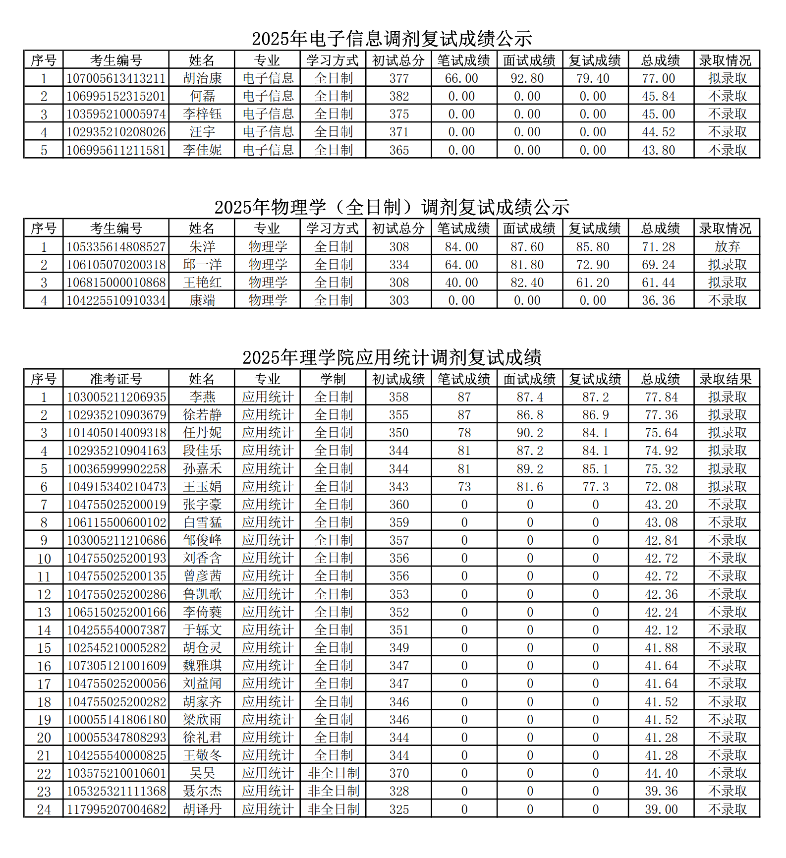 2025年调剂复试成绩公示(二)